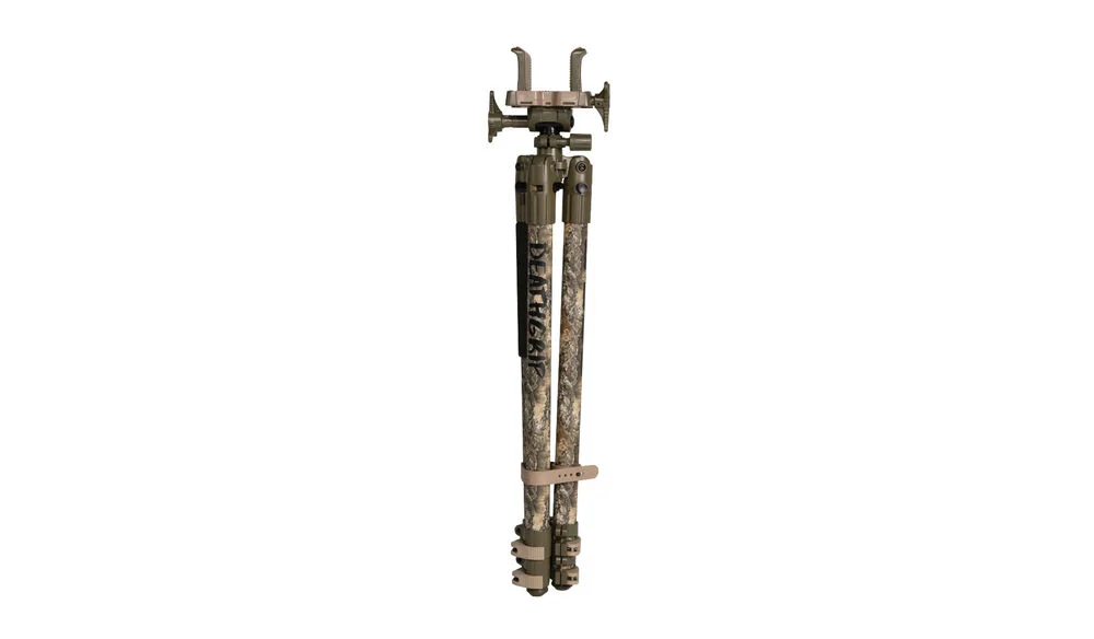 The BOG DeathGrip Tripod (Realtree EXCAPE) combines rugged durability with ultimate stability in a lightweight, camouflaged design ideal for hunters and shooters. Featuring the innovative DeathGrip clamping head, this tripod securely locks your firearm or crossbow into place, eliminating unwanted movement and providing rock-solid shooting support. Now available in Realtree EXCAPE camo, it blends seamlessly into natural environments, making it perfect for stealthy hunting in varied terrains.