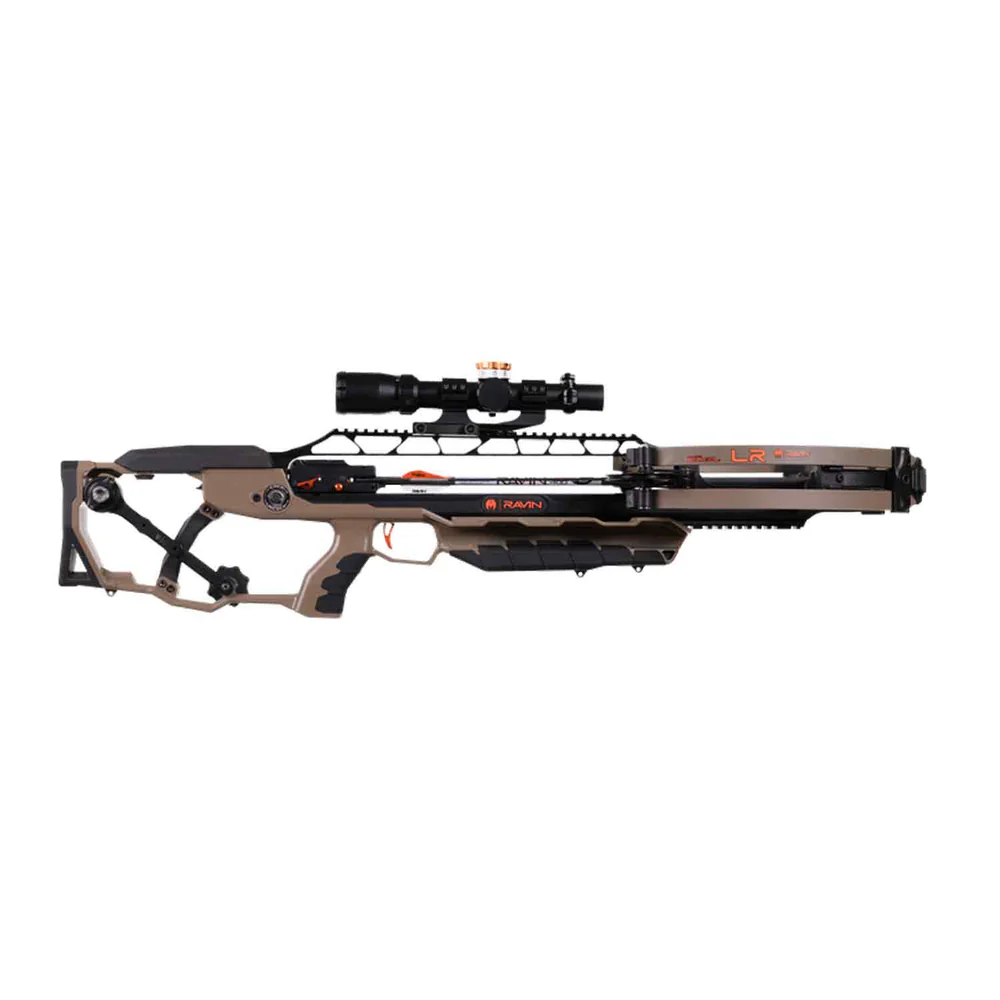The Ravin LR Long Range Crossbow Package sets a new standard for precision, distance, and performance in modern crossbow technology. Designed to mirror long-range rifle systems, the Ravin LR is optimized for serious hunters and target shooters who demand power and pin-point accuracy at extreme distances. With a stunning velocity of 450 FPS and 180 ft-lbs of kinetic energy, this crossbow can effectively hit targets up to 135 yards away with surgical precision.